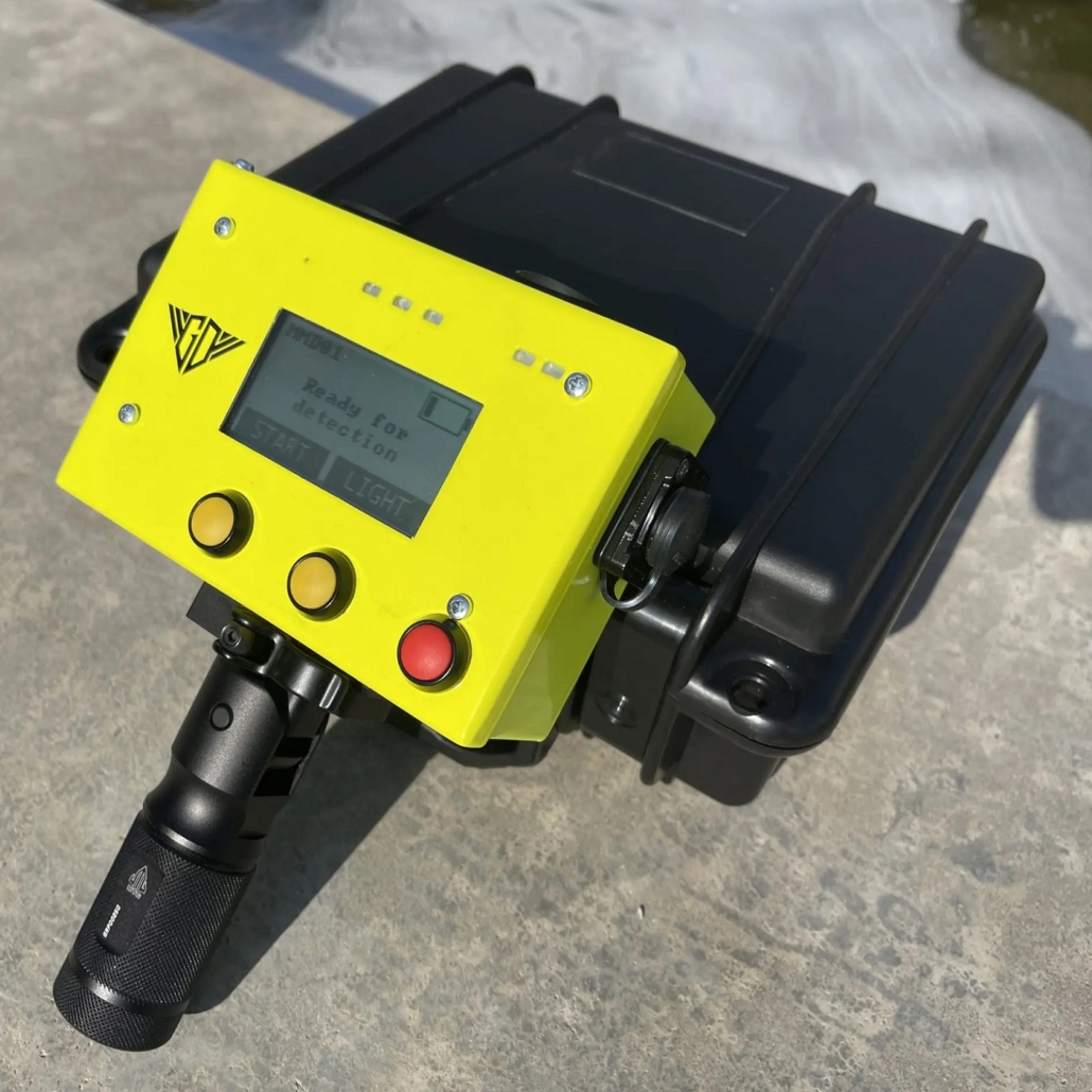 Rilevatore portatile progettato per individuare la presenza di esseri umani o animali vivi all’interno di veicoli, come auto e camion, attraverso il principio di rilevamento delle vibrazioni meccaniche, causate dal battito cardiaco, senza la necessità di emettere radiazioni dannose.